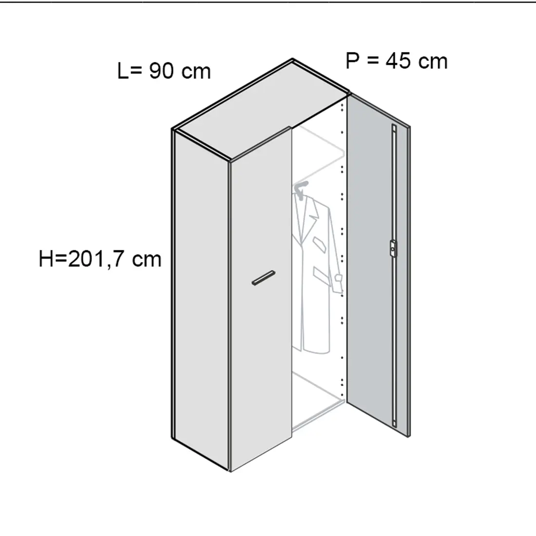 Libreria H200 L90, coppia ante H200 legno con serratura, 1 ripiano con asta appendiabiti estraibili