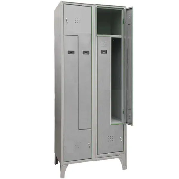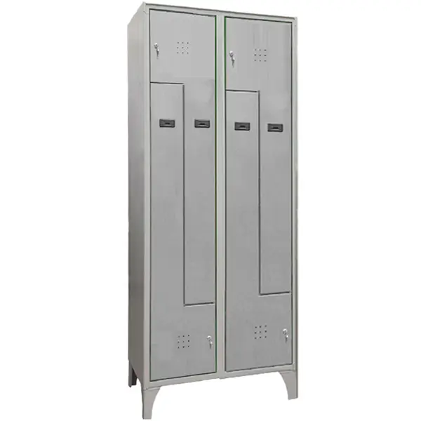 Armadio spogliatoio monoblocco con struttura robusta e design funzionale, ideale per spogliatoi aziendali, palestre, stabilimenti industriali e ambienti professionali. Realizzato in lamiera d’acciaio profilata di prima scelta con spessore 6/10, elettro-puntato e fornito su piedi per una maggiore stabilità e facilità di pulizia.