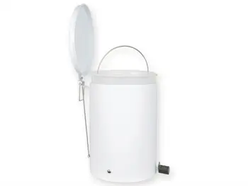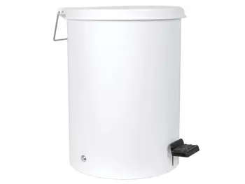 Contenitore da 9,5 litri in acciaio smaltato, con secchio interno in plastica. Dotato di pedale per un’apertura facile e igienica. Peso: 2 kg.