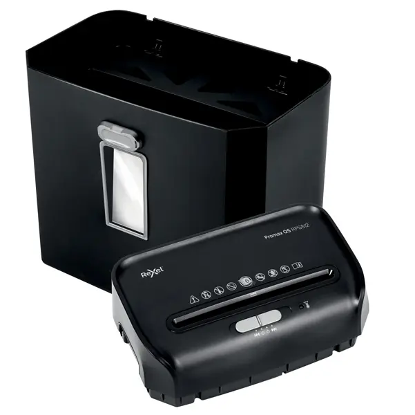 – Il cestino integrato ha una capacità di 12 litri, che può contenere fino a 88 fogli A4 distrutti. È dotato di una testa sollevabile per un facile accesso al cestino. Inoltre, dispone di una finestra trasparente che consente di controllare il livello di riempimento del cestino.