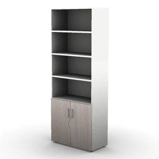 Libreria H240 L90, coppia ante inferiori H80 legno, con serratura, 5 ripiani