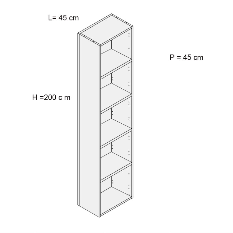 Armadio alto a giorno 200x45x45 con 4 ripiani