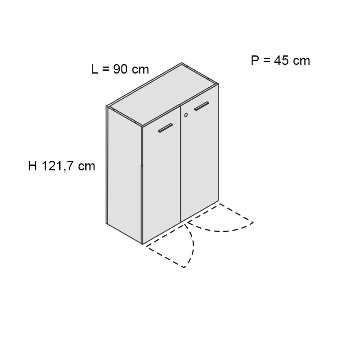 Libreria H120 L90, coppia ante H120 legno, con serratura, 2 ripiani