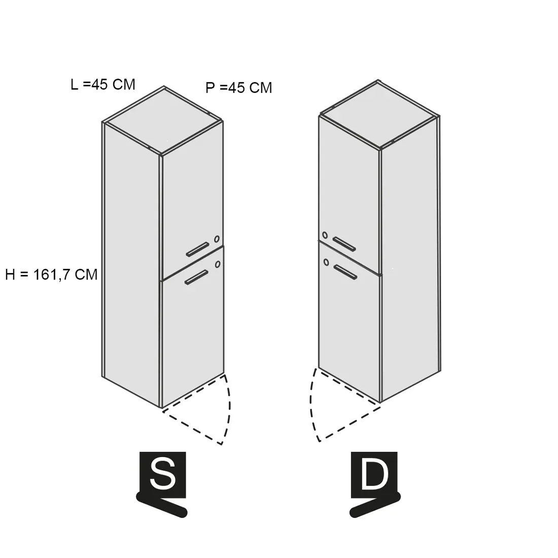 Libreria H160 L45, anta inferiore H80 e superiore H80 legno, con serratura, 3 ripiani