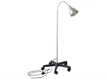 Lampada alogena con struttura tubolare in alluminio e braccio flessibile in acciaio cromato. Base in plastica Ø 60 cm con ruote in plastica Ø 50 mm (1 con freno). 220-240 V, 50-60 Hz. Lampadina 100W (connessione E27) non inclusa.