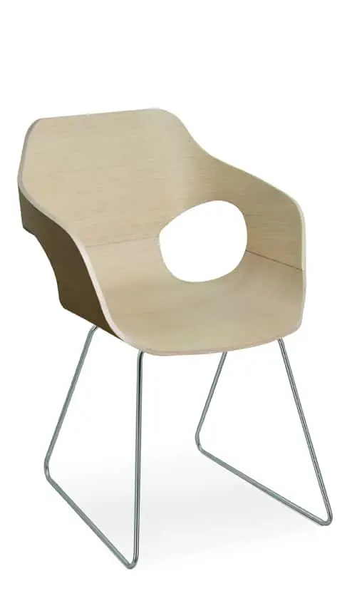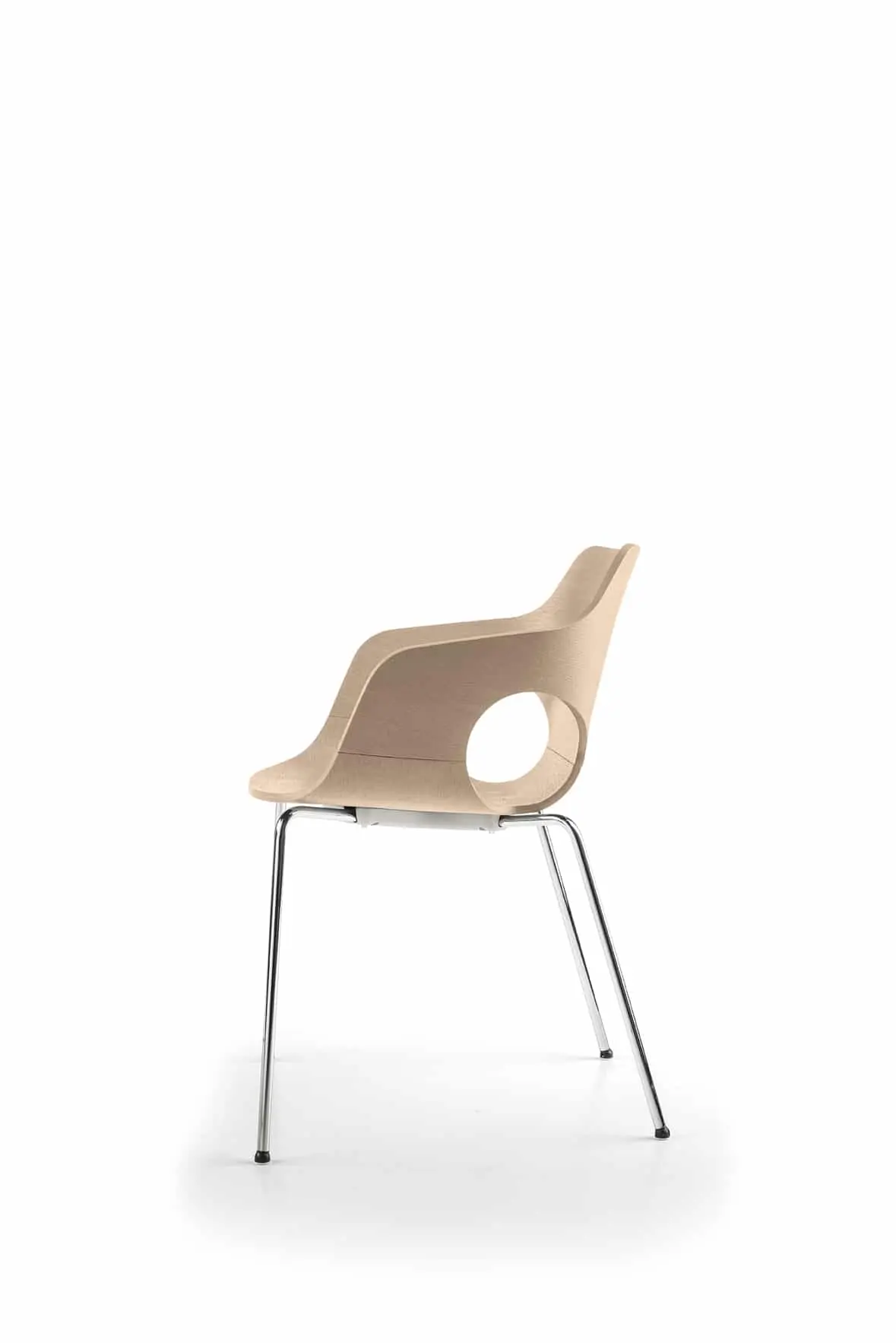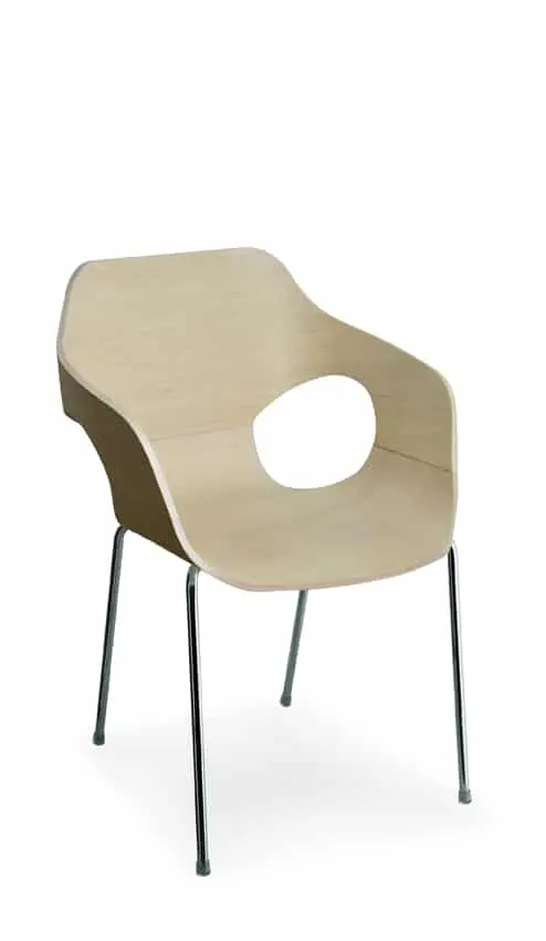 La forma innovativa di Olé gioca con il legno in un elegante contrasto, da scegliere nelle finiture rovere naturale, sbiancato e wenghè. Raffinata e sempre confortevole, può essere dotata di cuscinetto copri sedile.