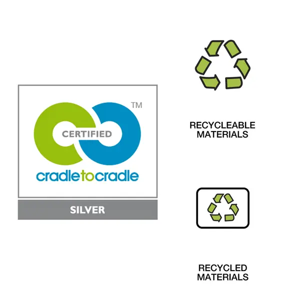 Composta per l’80% da materiali riciclati e riciclabile al 97%, è una scelta ecologica e responsabile.