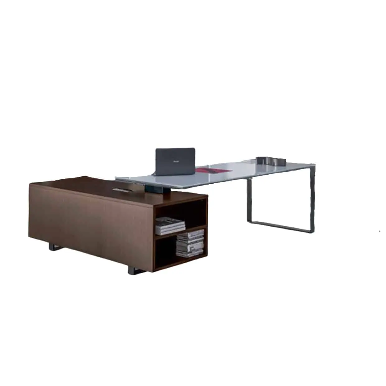 Scrivania Planeta in laminato gambe in metallo e mobile di servizio portante