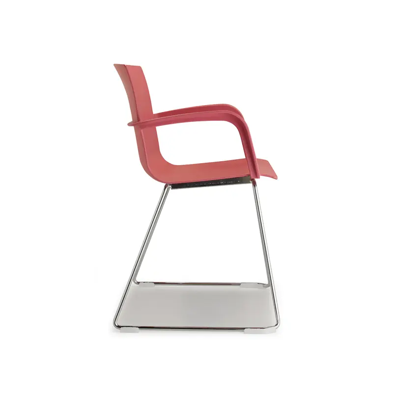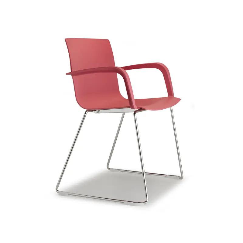 Seduta con braccioli in materiale plastico, proposta nei colori rosso, grigio, avorio, giallo o azzurro, per un tocco di personalità e versatilità.