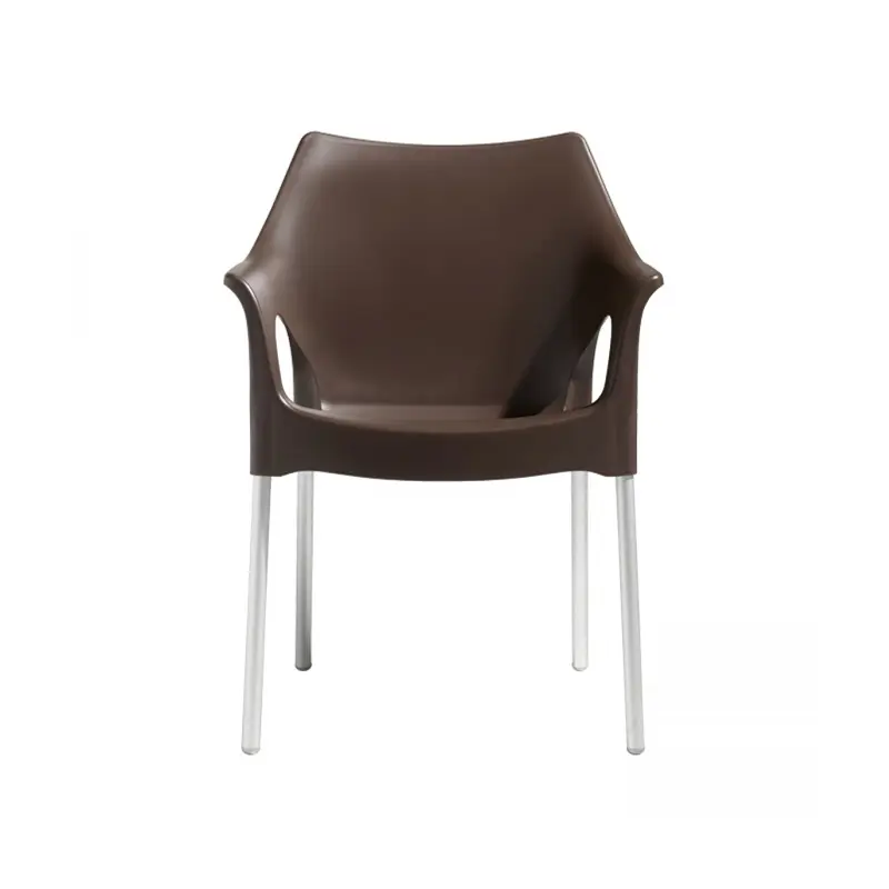 Sedia con gambe in alluminio anodizzato, resistente e leggera, ideale per un utilizzo versatile sia in ambienti interni che esterni.