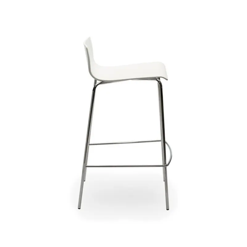 Sgabello con telaio in tubo di acciaio cromato Ø 16 mm, dal design essenziale e resistente.