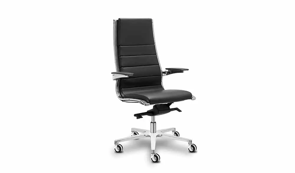 Design moderno e innovazione. Questi sono i tratti distintivi per la SIT IT di SITLAND. La seduta mono scocca è completamente imbottita e lavorata con elementi orizzontali. Può essere rifinita in eco pelle o tessuto, e i colori disponibili sono ampi e accattivanti. La seduta è provvista di sistema basculante e la base è a cinque razze in metallo cromato. I braccioli sono in acciaio cromato e possono essere regolati a seconda delle esigenze.