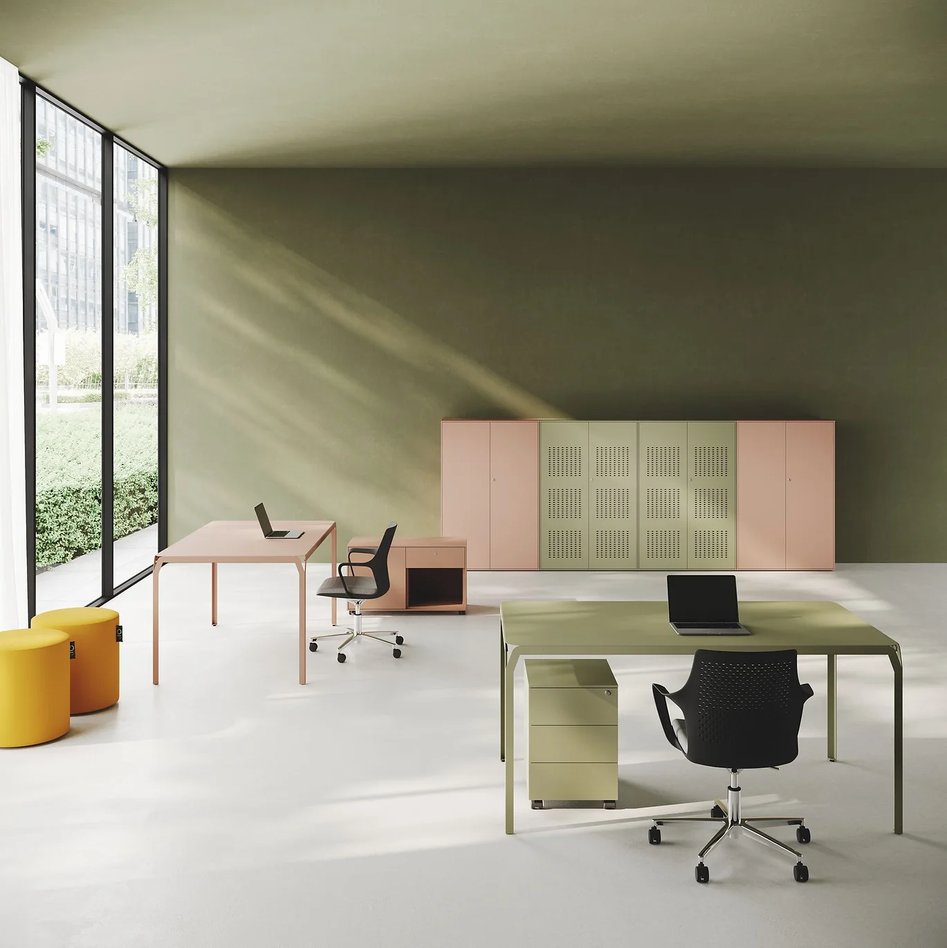 Estetica minimale: linee pulite che si integrano con ambienti direzionali, operativi e residenziali contemporanei.